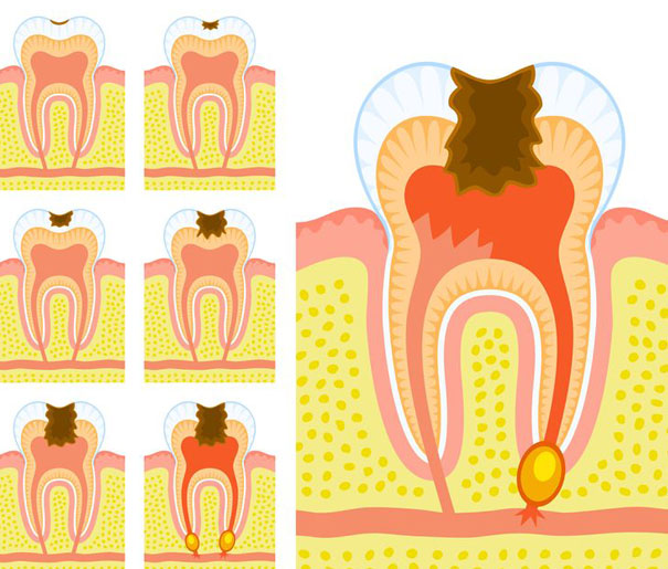 Il existe plusieurs niveaux de délabrement d’une dent :