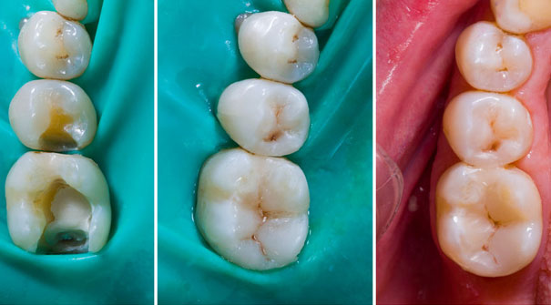 L’alternative des pièces en céramique (inlay/onlay) permet d’éviter une couronne qui entraîne un délabrement plus important de la dent.